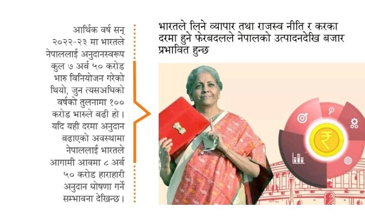 नेपालको अर्थतन्त्रको अवस्था र गतिलाई आन्तरिक परिस्थितिले मात्रै निर्धारण गर्दैन, अधिक परनिर्भरता रहेकै कारण बाह्य कारणले पनि नेपालको अर्थतन्त्र उच्च प्रभावित हुने गरेको छ । यतिवेला भारतीय वित्तमन्त्री निर्मला सीतारमण आगामी आर्थिक वर्ष सन् २०२३–२४ को बजेटको तयारीमा जुटेकी छिन् ।