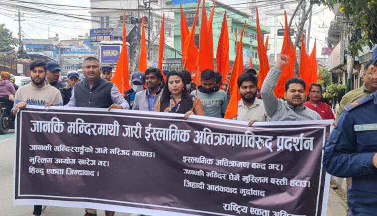 जानकी मन्दिर अतिक्रमण र मुस्लिम आयाेग विरुद्ध प्रदर्शन