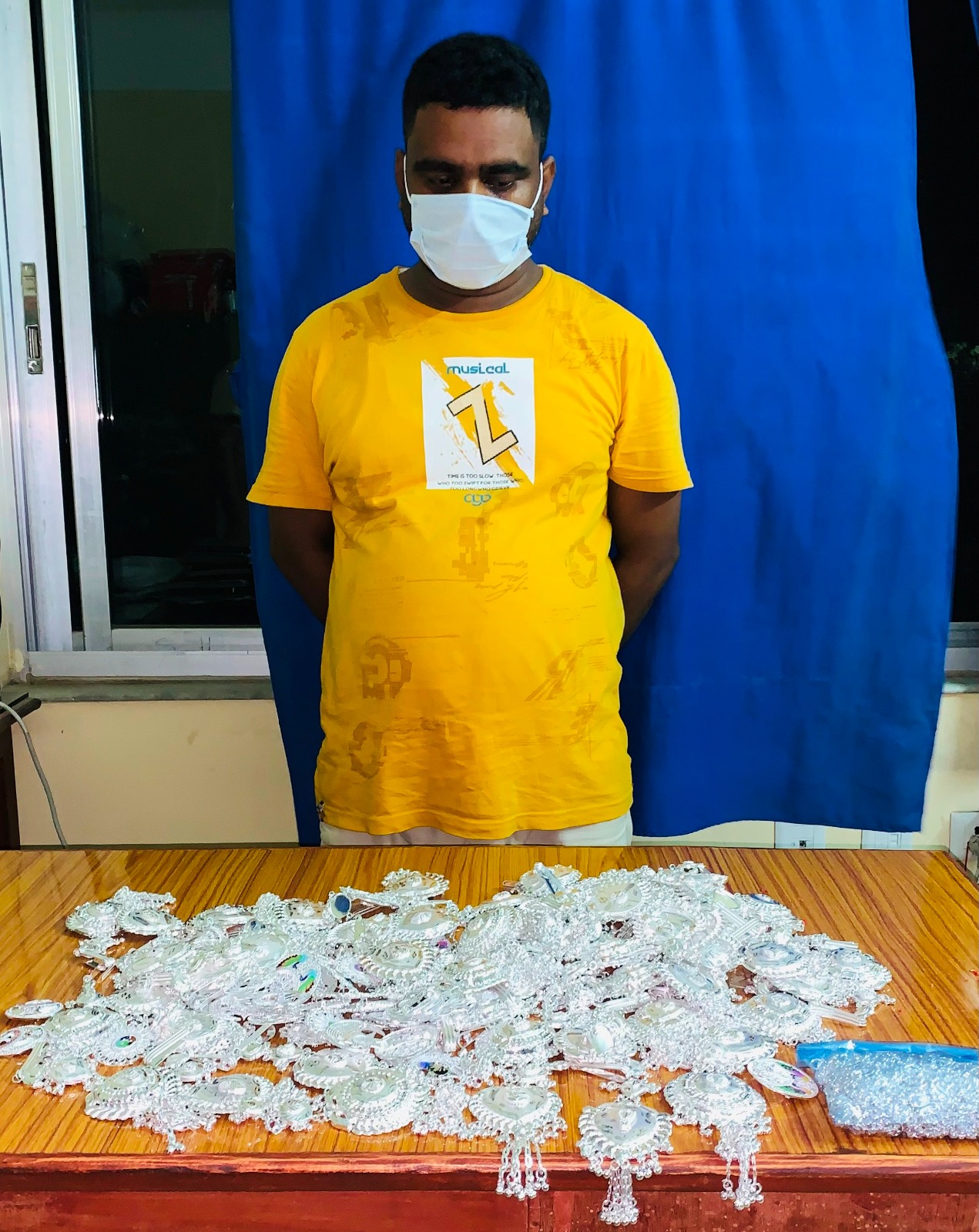 त्यस्तै विरगंजबाट कलैया तर्फ आउदै गरेको ना.१६ प ४०१६ नं.को मोटरसाइकललाई चेकजाँच गर्ने क्रममा जिल्ला पर्सा विरगंज म.न.पा.वडा न.३ मा बस्ने वर्ष ४० को राजेश साह सोनारले मोटरसाइकलमा लुकाई छिपाई राखेको अं ४ किलो चाँदीको गर-गहनाहरु सहित पकाउ परेका छन। पकाउ परेका चाँदीको गर-गहनाहरु बजार मुल्य रु.५ लाख बराबर रहेको जिल्ला प्रहरी ले जान्कारी गराएको छ। पक्राउ परेका राजेश साह सोनारलाई तत्काल उक्त चाँदीको गर-गहनाहरु सहित पक्राउ गरी थप अनुसन्धनको कार्य भईरहेको जिल्ला प्रहरी ले जानकारी गराएका छ्न।
