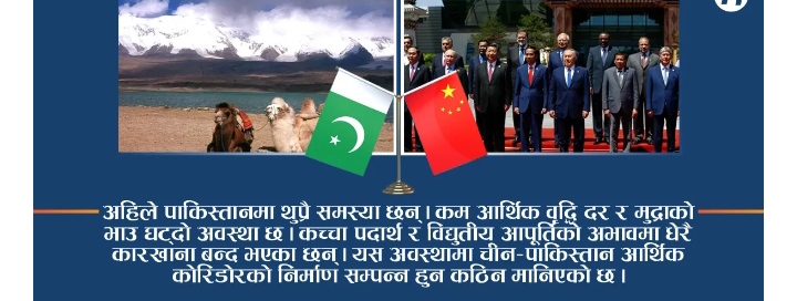 अहिले पाकिस्तानमा थुप्रै समस्या छन्। मुद्रास्फीति बढ्दो छ। कम आर्थिक वृद्धि दर र मुद्राको भाउ घट्दो अवस्था छ। कच्चा पदार्थ र विद्युतीय आपूर्तिको अभावमा धेरै कारखाना बन्द भएका छन्। यस अवस्थामा चीन पाकिस्तान आर्थिक कोरिडोरको निर्माण सम्पन्न हुन पनि कठिन मानिएको छ।