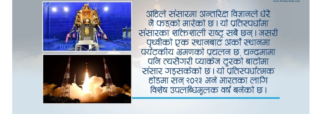 जसरी पृथ्वीको एक स्थानबाट अर्को स्थानमा पर्यटकीय भ्रमणको प्रचलन छ चन्द्रमामा पनि त्यसैगरी प्याकेज टुरको बाटोमा संसार गइसकेको छ। यस प्रतिस्पर्धात्मक होडमा सन् २०२३ भने भारतका लागि विशेष उपलब्धिमूलक वर्ष बनेको छ।