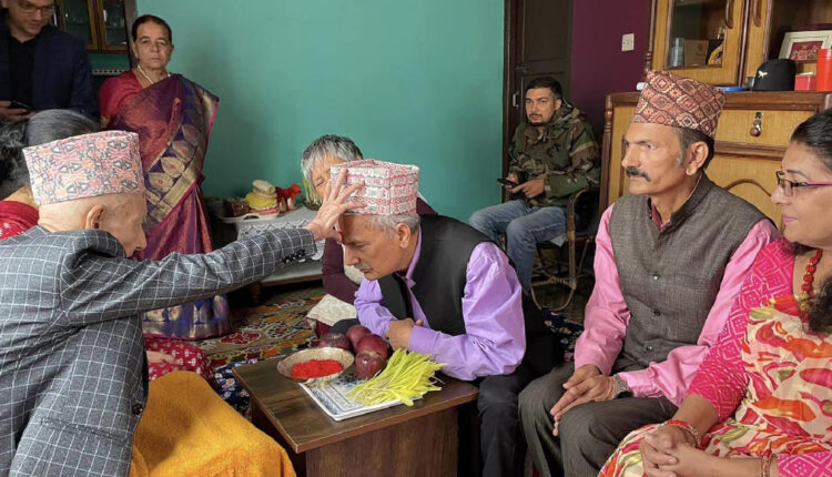 भट्टराईले बुधबार टीकाको शुभ साइतमै ९३ वर्षीय पिता भोजप्रसाद भट्टराईबाट टीका ग्रहण गरेका हुन् । उनीसहित उनको परिवारका सबै सदस्यले बुवाको हातबाट टीका ग्रहण गरेका छन् ।