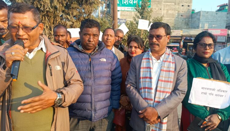 रेशम चौधरीको रिहाइ माग गर्दै बाराको कलैयामा खबरदारी जुलुस